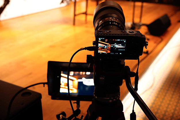 今回fpを採用した理由は、満席会場の中でなるべく存在感のない大きさでベストな映像を撮影できるシネマカメラを探していたところに、その存在が目に止まり一択となった。これまでシネマカメラというと長大で存在感のあるものばかりだったので、fpの存在は驚きだ。