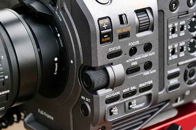 冒頭でも述べたが、FX9のインターフェースはFS7 IIから細かい部分が色々と変更されている。特に筆者が気に入ったのはクルクルピッのメニューボタンの廃止だ。以前の機種ではメニュー内のカーソルを上下させるためにダイヤルを回すのだが、回している最中にダイヤルを押し込んでしまい、意図しない部分で無駄な時間を費やしてしまう事が多かったが、FX9でいよいよメスが入った。側面パネルのメニューボタンは4方向と選択が全てボタンに変わった。電子式可変NDフィルターは健在だ。FS7ではNDの入り切り操作はダイヤル式だったが、この部分はボタン式に変更された。電子NDフィルターの操作ダイヤルは若干小ぶりな形状に変更となった。