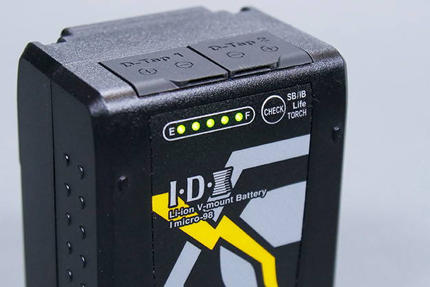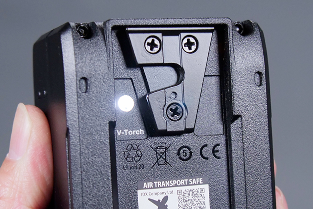 小型軽量で多機能と、IDXの意欲作というところではないだろうか。ちなみに残量チェックボタンを2回連打すると、Vマウント金具側に搭載されているLEDが点灯するギミックが搭載されている。いざという時にはとても役に立ちそうな装備ではないだろうか。