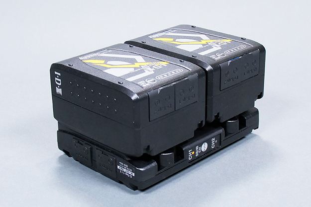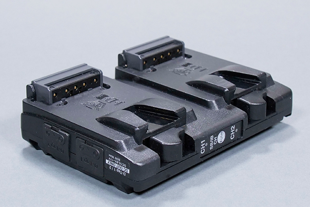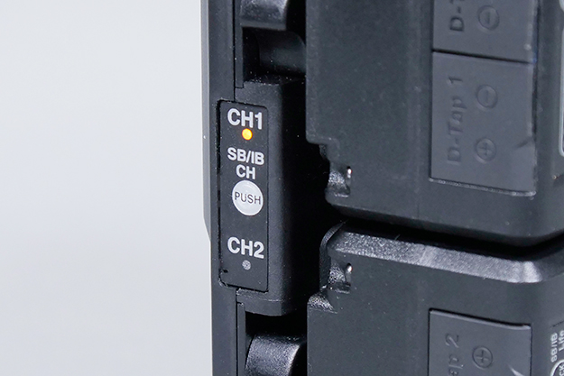 1ch・2chとバッテリースロットがあるのだが、最初にバッテリーを装着したchが優先的に通電する。また2本装着時、中央の切り替えボタンを押すことにより1/2chを通電しながら切り替えることが出来る。片方のバッテリーがおよそ12.0Vになると自動的にchを切り替えてくれるので、カメラへの給電を止めることなくバッテリーを交換できるシステムとなっている。