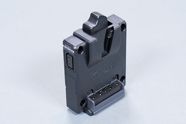 microシリーズに合わせたマイクロサイズのVマウントプレート。このサイズの小型プレートにもD-Tapが2つとUSB-Cの出力端子を装備する。D-Tapからの出力はMAX80WまたUSB-Cは5V 2.3Aとなっている。