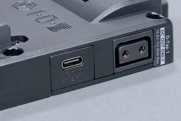 特筆すべきところはホットスワップが可能で、2本装着時は1本ずつ出力し、バッテリーがなくなったら自動で切り替えを行ってくれるため、長時間撮影でもカメラを止めることなく撮影し続けることが出来るアイテムとなっている。本体上部にはD-Tap端子が2つ搭載されており、側面にはUSB-C端子が1系統搭載されている(5V 2.3A)。