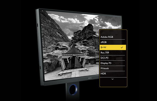 SW321Cは、通常のPCモニターとは異なり、カラーマネジメントモニターという分類になる。色域としては、Adobe RGB 99%、Display P3 & DCI-P3 95%、sRBG & Rec.709 100%に各種ガンマをカバー。約10億7000万色を表示可能な10-bit IPSパネルに16-bit 3D LUT補正機能を搭載し、Delta E≤2の色再現性を実現した。また、ハードウェアキャリブレーションに対応しており、PANTONE/CALMAN認証を取得している。