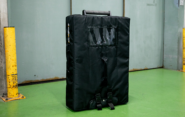 またこの手のカートの場合、撮影現場の運用方法としては撮影機材車へそのまま「せーの」で乗っける事が多いと思う。ハイエースクラスの撮影機材車で移動する場合は特にコンパクトにする機会は少ないと思うが、例えば地方出張や海外ロケに於いて飛行機で移動する場合、これまでは撮影カートの使用をあきらめざる得ない場合でもVoyager EVOであれば十分、導入を検討する余地があると思われる(畳んだカートを運搬するための専用バックも販売されている)。