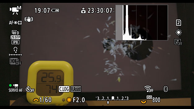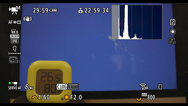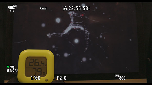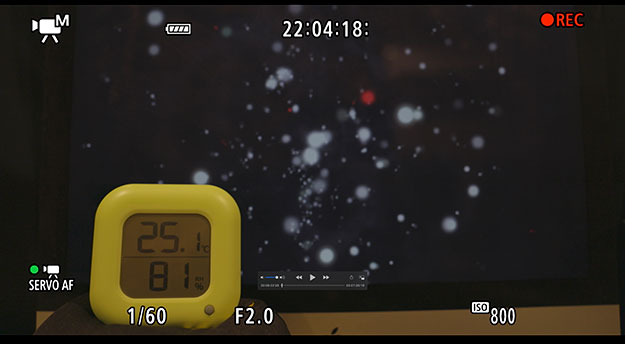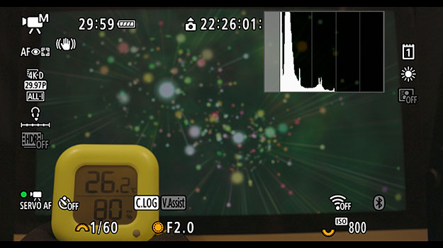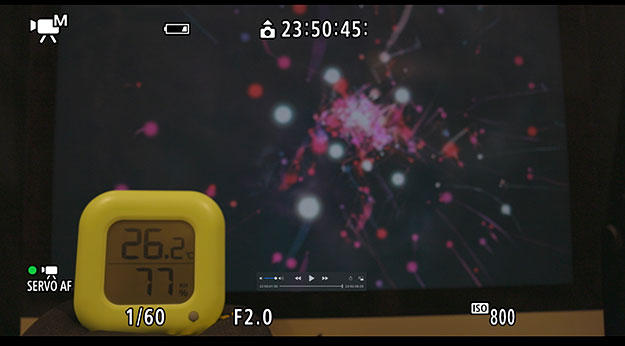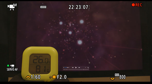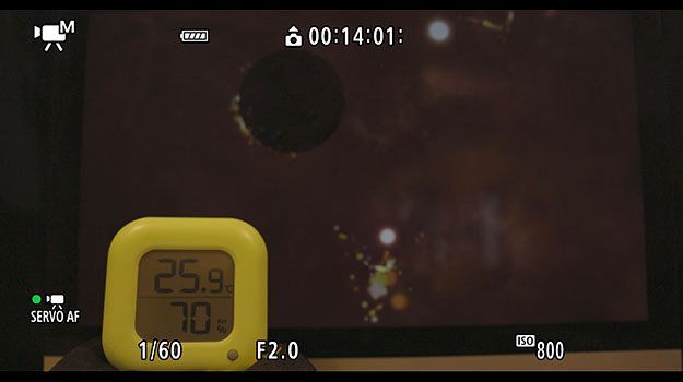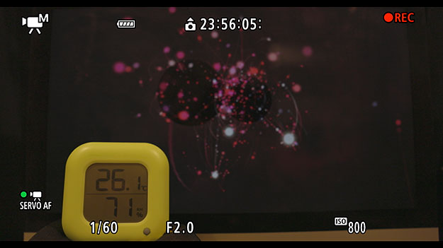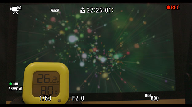 やってみて、その後はスナップ的にあれこれと動画を撮ってみて、運用上全く熱問題に当たらなかったので、もう一度しっかり運用を想定したテストの方法をあれこれ試行錯誤して、カメラのHDMIアウトをメニュー含めて表示して、それを記録することでみやすくできるかな、とやってみたのです。