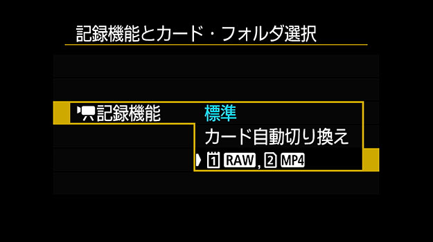 動画メニューは組み合わせ可能な設定がハイライトされます。