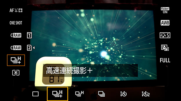 すぐさまスチルモードにしてH+の20枚/秒連写ができるかを確認。