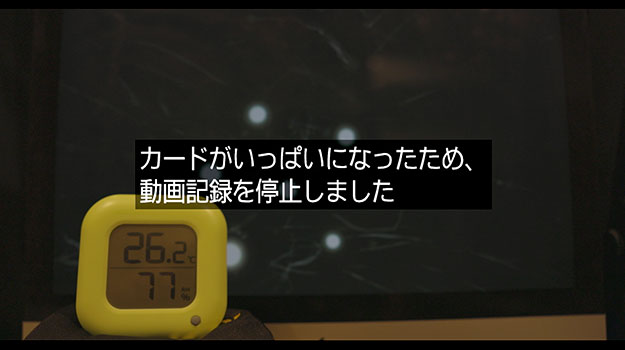 なんとメディアが一杯になってしまったんですねぇ…。残念…。残量表示はほぼ正しかった…。