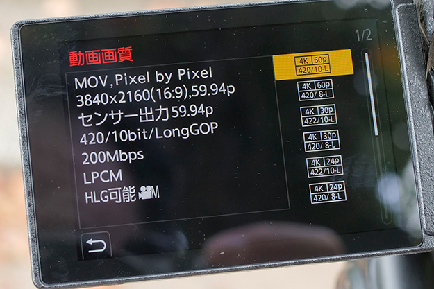 背面のボタンやジョイステック類はS1系を踏襲している。GH5Sと比較すると基本的なボタン類の配置は似たところがあるので違和感なく使うことができた。筆者的に良かったのはDISP(ディスプレイ)ボタンの位置が下方に移動した点だ。GH5SのDISPボタンは親指がかかる位置にあるので、カメラを右手で持ったまま手を下げた時など、不用意に押してしまい、LCDが真っ暗になっていた…という事がよくあった。このような意図しない動作を防ぐ位置関係には好感が持てた。