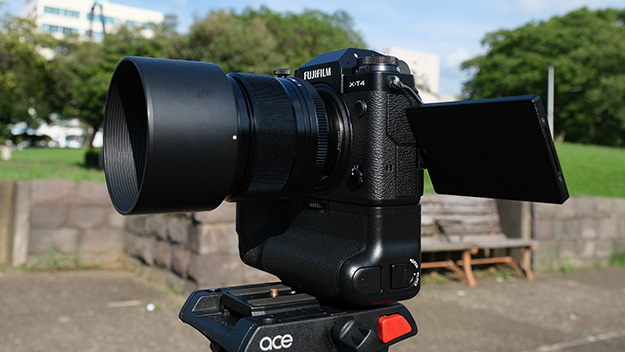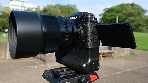 大きさは、同社の標準ズームレンズ「XF16-55mmF2.8 R LM WR」とほぼ同じであるが、質量は約200gほど重い845g。X-T4のボディ単体に装着した場合のバランスはレンズが勝る感じで、長時間の手持ちを気軽にとはいかない。バッテリーグリップを装着した方が、重量は増えるものの全体のバランスが最適となり、グリップのホールド感も増すので取り回しは楽に感じる。