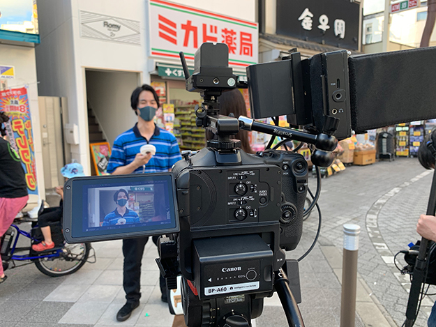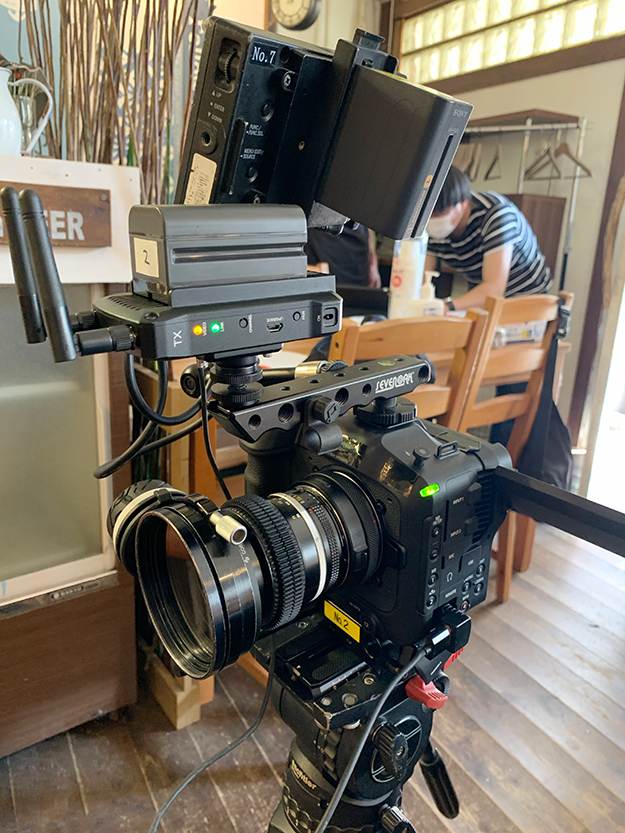 セッティングとしては、カメラ本体から5インチモニターにHDMIを出し、そこからワイヤレスへ接続。スタッフ確認用のモニターに絵を飛ばしました。収録フォーマットは4096×2160 XF-AVC Canon LOG2 Cinema Gamutフレームレートは23.98fpsです。