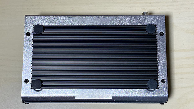 放熱用に大きなヒートシンクが取り付けられている。そのせいか、数時間電源を入れたままにしても筐体自体の熱は少し暖かくなる程度に抑えられていた。
