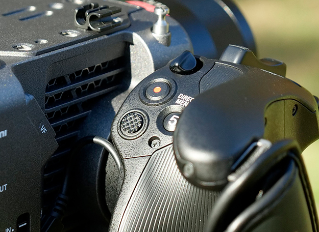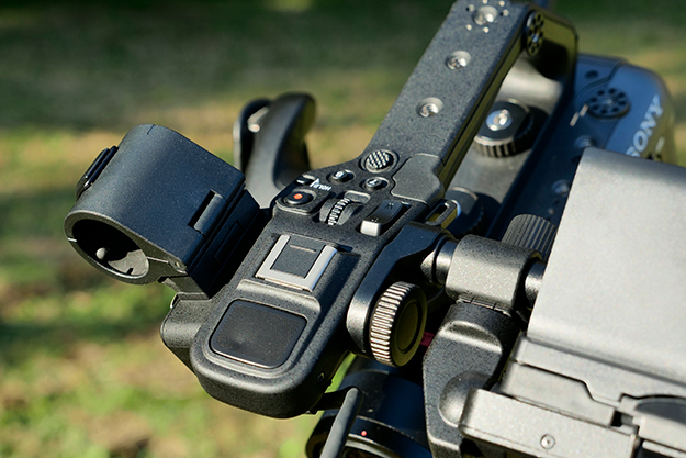 FS5と共通のスマートグリップは180°6段階の角度で固定可能で、手持ちでのローアングルから背伸びをしたハイアングルまで多岐にわたる撮影ポジションに柔軟に対応できる。本機ではアサイナブルボタン5にメニューが割り振られており、右手はグリップしたまま直ぐ下の十字ボタンで操作出来る。この機能でシャッタースピード、F値、ISOなどに素早くアクセスすることが出来る。また人差し指が掛かるところにあるダイアルでF値をコントロールする事も可能となっている。