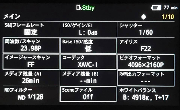 デュアルREC可能なSDXCカードスロットを装備。記録方式はクラス300のSDXCカード使用する事によりXAVC-I 422 10ビットまで可能。またDCI 4K/QFHD 60Pまで記録することが出来る。ハイフレームレート収録ではDCI4K/60fps QFHD/120fps FHD/240fpsまで撮影できる。いよいよQFHDでも240fpsまで撮れる時代になったのかと驚きである。