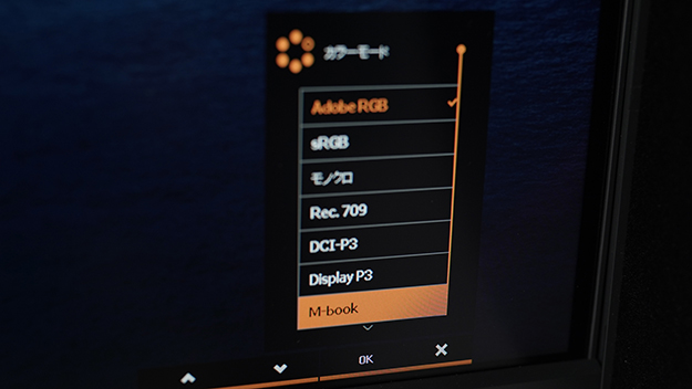 だとしたらもはやAppleディスプレイ準拠での画作りで良いのではないか?という気さえする。そんな場合にこの「M-bookモード」が役に立つ気がする。というか良い目のつけ所だ。