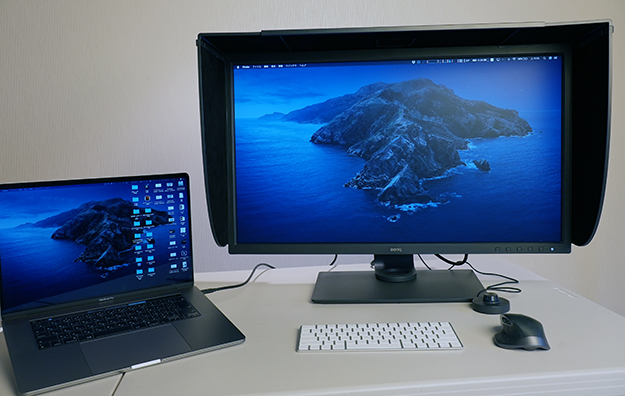 筆者の普段の編集環境はiMac Proを主軸にBenQのPV270(現在販売終了のWQHDモニター)と他社のカラーマネジメントモニターのトリプルディスプレイにして、作業に応じてデュアルディスプレイともう1枚のモニターをBlackmagic Design Ultra Studio 4Kを介してのマスタモニターとして使用している。いずれMac Proなどのデスクトップ機に乗り換えた際にはSW321Cのデュアルディスプレイ環境などが見た目にも作業環境的にも一番しっくりきそうな気がしている。