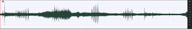 しかし、これを48dB程度ゲインを上げてやると、非常に綺麗な音声波形が出てくる。これが32bitフロートの強みだ。波形が現れないほど小さな音でも、まるで録音時にゲイン調整をしたかのような高音質になるのだ。