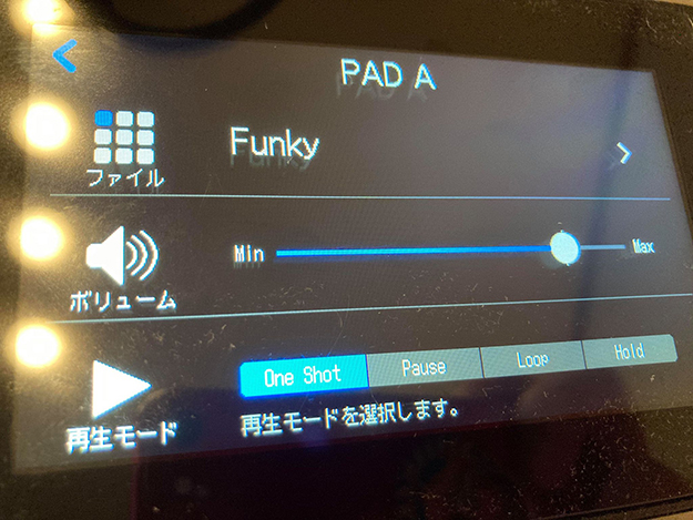 登録できるオーディオファイル形式はWAV/44.1kHz/16bit/24bit/モノラル/ステレオで長さに制限はない。サウンドパッドとしての物理フェーダーは1つだが個別のサウンドファイルの設定項目の中で再生ボリュームを設定できるのでBGM用の音楽は小さめ、ジングルのアタックは大きめなど事前にバランスを決めて仕込んでおけば物理フェーダーは動かさずに運用できる。再生の方式は「OneShot」「Pause」「Loop」「Hold」の4つから選択可能だ。