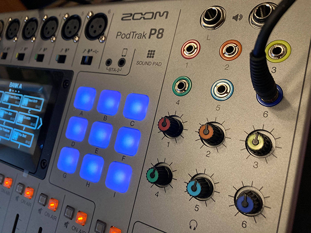 BGMをかけながらジングルのアタックでコーナーに入りそのまま生でトークをしたい、ラジオ愛あふれるライブレコーディング派ならPodTrak P8がぴったりだ。6本のXLRマイクに加えスマホなどの音声、ジングルなどを登録してパッドを叩いてポン出し、それらを録音できる。ポッドキャスターが操作しながらトークすることを前提にした設計なのでボタンレイアウトはシンプルで説明書を読まなくても直感的に使える。