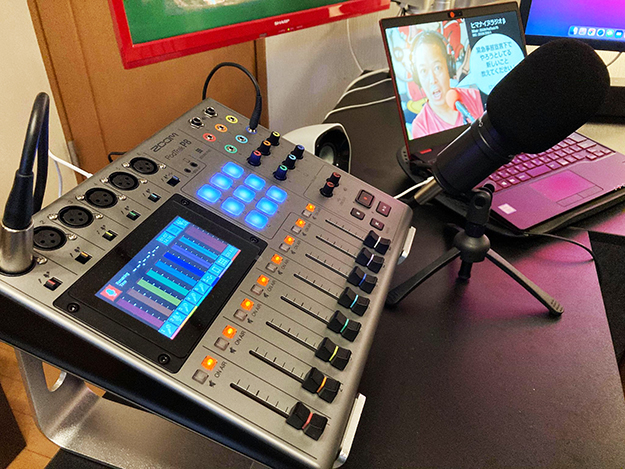 そんな中、音声コンテンツの発信にうってつけの機材を紹介したい!それがZOOM社の「PodTrak P8」である。映像のない音声コンテンツの利点はたくさんある。まず自分が映らなくていいので身支度がいらない。Zoomなどで複数人でのコミュニケーションも多くなったと思うが、ズラッと並ぶ顔の中に自分の顔が露出するのは気恥ずかしく慣れないという人も多いだろう。またオンライン飲み会で自分が発話するタイミングもリアルと違って難しく、ひとつの話題に付き合わないといけないのも辛い…。