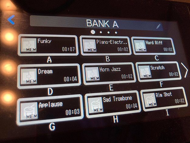 サウンドパッドは物理ボタンとして9個あるが、4つのバンク機能を切り替えることで36種類のオーディオファイルを登録してポン出しすることが出来る。この機能をいかに使いこなすかがP8活用の鍵となる。