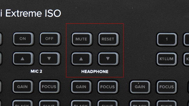 ATEM Mini Extremeを眺めて見ると、多くのボタンに圧倒されるかもしれない。待望のヘッドフォン出力端子も付き、その音量、ミュートなどの操作も本体のボタンで可能になった。