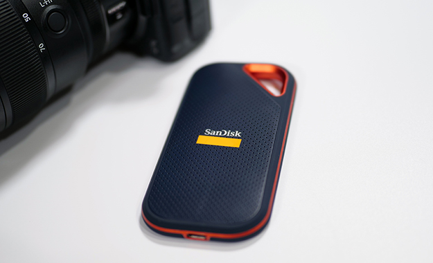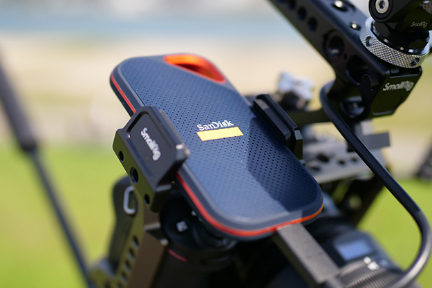 SSDからPCへの素材転送は、USB 3.2 Gen 2。サンディスク エクストリーム プロ ポータブルSSD自体は、インターフェイスにUSB 3.2 Gen 2×2を採用。スペック上の転送速度は読取り/書込み速度ともに2000MB/秒となっている。前回、エクストリーム プロ ポータブルSSDをお借りした際は、USB 3.2 Gen 2×2ポートを備えたPCごとお借りしたが、今回は自前のPCなのでUSB 3.2 Gen 2止まり。それでも条件が良ければ1000MB/秒前後の転送速度を得られるので、大容量となるBRAW素材やProRes素材を扱うにはエクストリーム プロ ポータブルSSDは最適だ。
