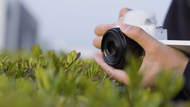 例えば、広角レンズで景色を広くよく見せたり、望遠レンズで遠くを撮ったり、単焦点レンズで主役を引き立たせるなど、レンズが交換できることでVlog表現の幅が広がります。