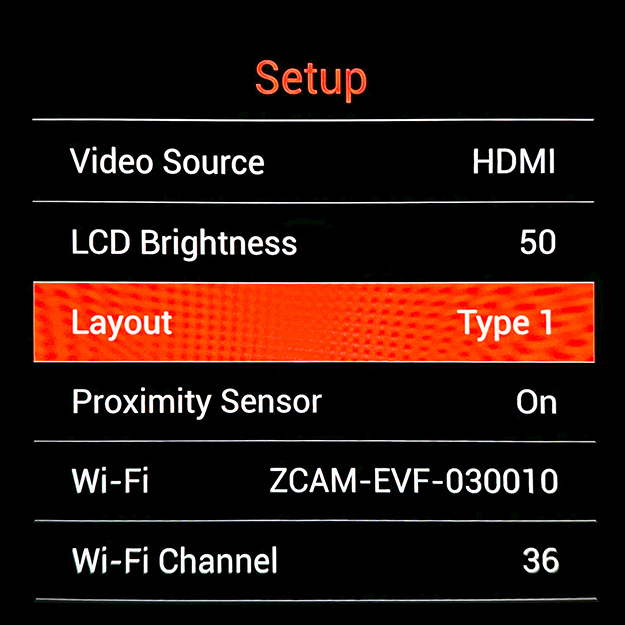 ZCAM EVFの各種設定は本体内の画面でのみ行うこととなっているが、使用する物理ボタンの配置のせいか少し馴染みにくい印象だ。覗く構えで本体向かって左側にあるので、右目覗きのときはそのまま外側にある左目でボタンを平行視して…とできなくもなさそうだが、脳がついていかない。