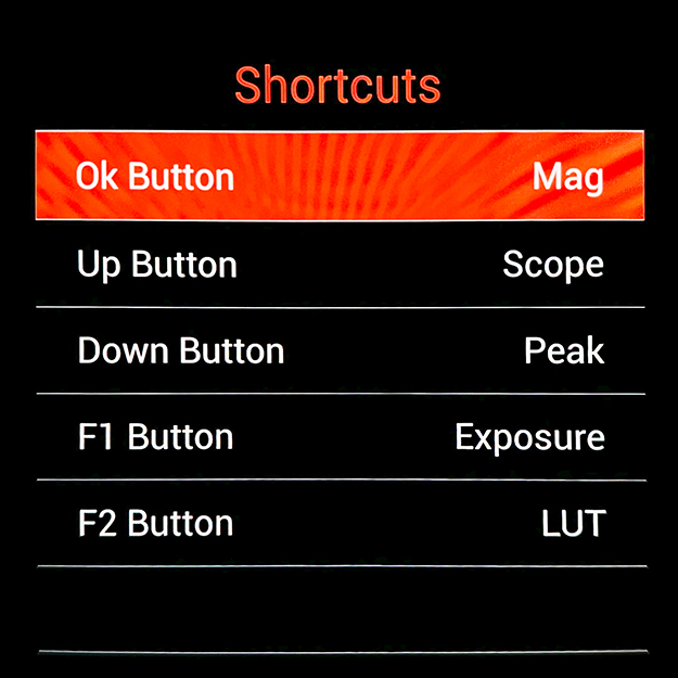 撮影中頻繁に使用する機能については、本体側面の5つのボタンにショートカットとして割り当てておくとクイックに使用していける。これらもやはり設定画面から設定する。