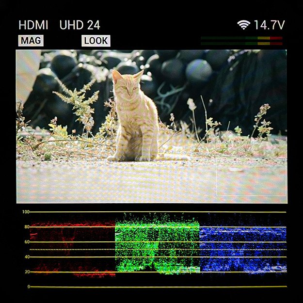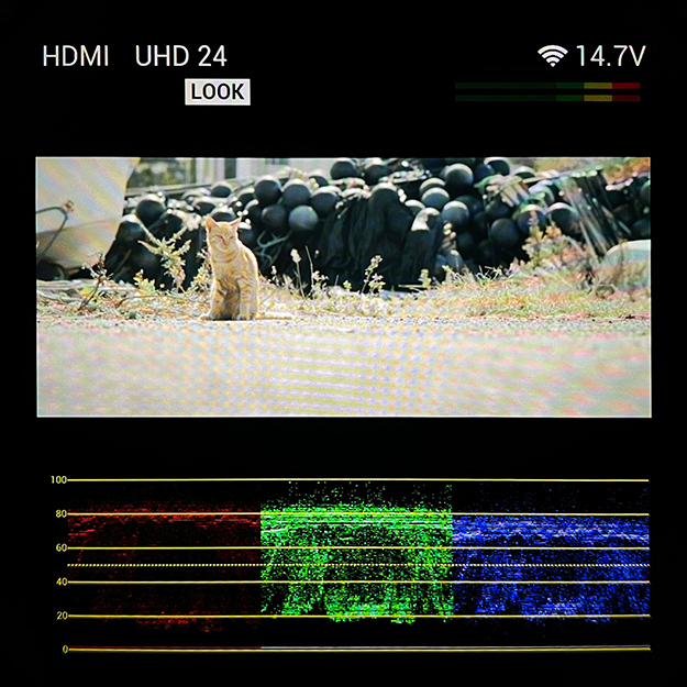 HDMIやSDIによってフィールドモニター類へ出力するか、有線もしくは無線でスマートフォン(アプリ)へ接続し画を確認することになっている。本体や撮影に関する設定の必要もあって、多くは後者を使用することになるのだが、環境次第では視認がしづらいことも多々ある。