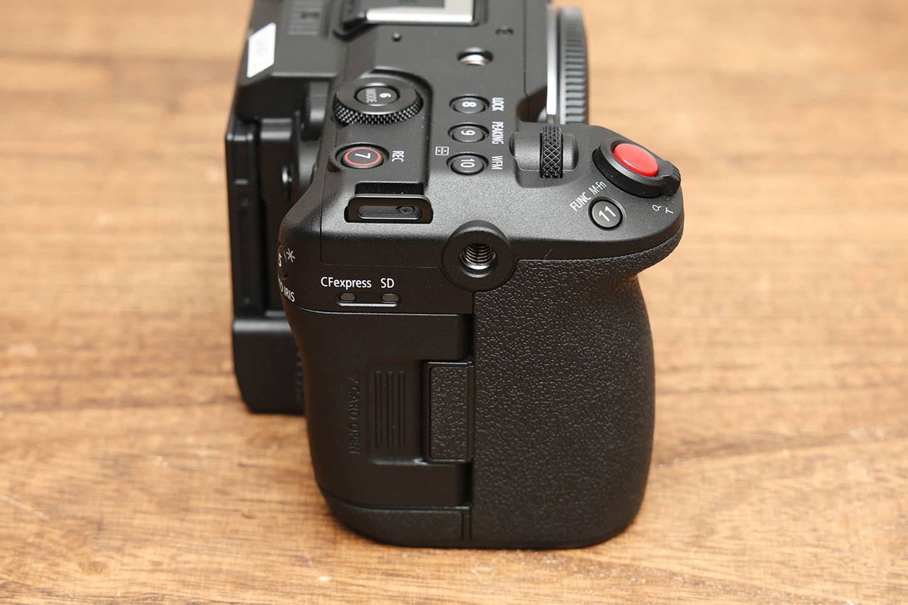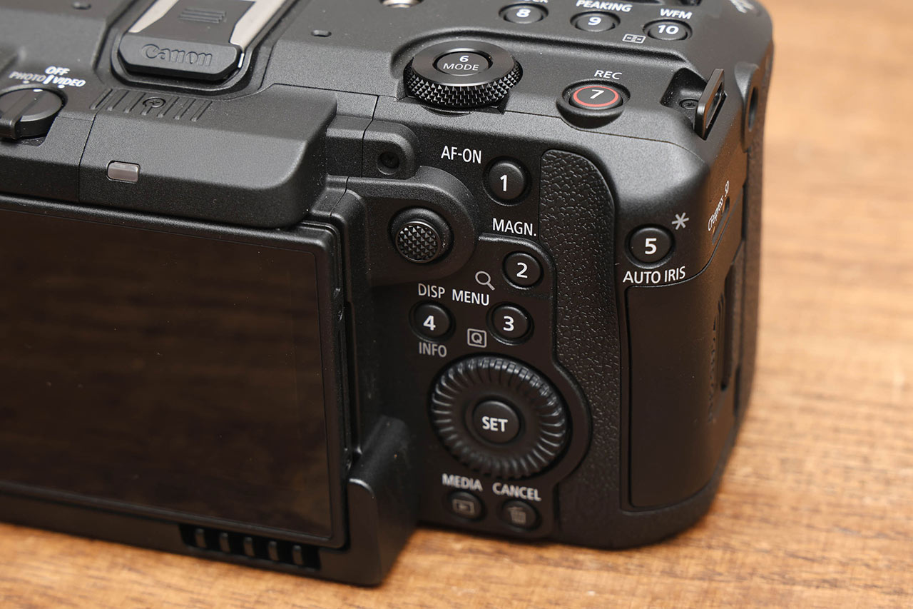 実物を手にした率直な感想として、まずは小さくて軽く、グリップも良好、そして「過去のどのカメラとも異なる」と感じた。フォルムはFX3を彷彿とさせるが、ボタン配置はスチルEOSのそれにCINEMA EOSの思想が融合している。