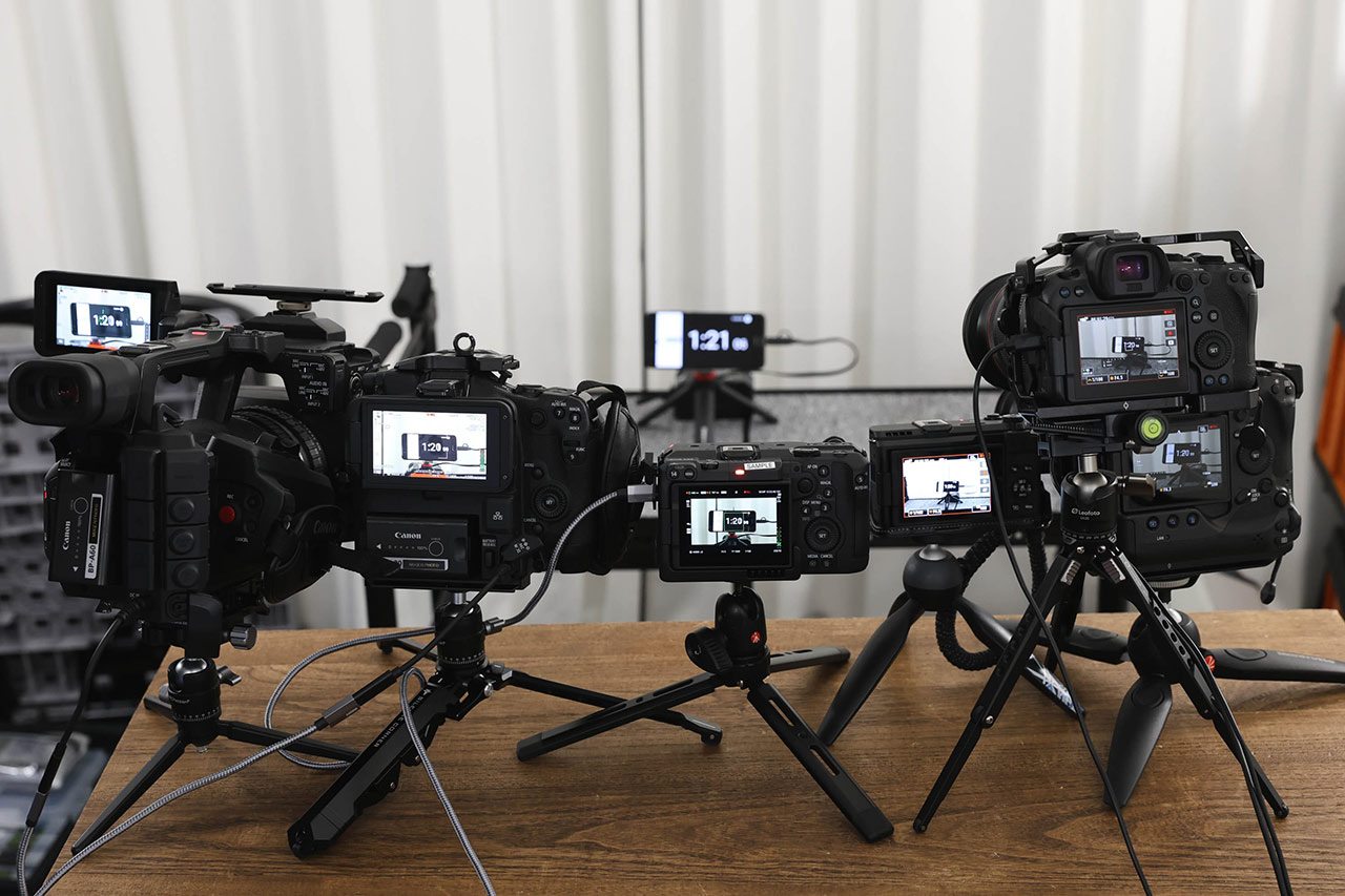 長時間の収録では、同一メーカーのカメラ同士でも多少のフレーム差異が生じることがあるが、6時間程度の連続収録において、これらCINEMA EOSのカメラは1フレームもずれることがなかった。エンジンが同一であることで、その精度が保たれているようだ。