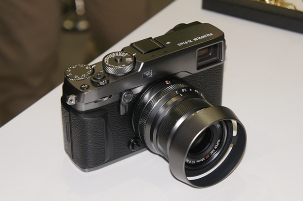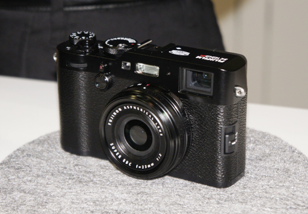 X100F。レンジファインダー式カメラのようなデザインを採用しており、操作も直感的なアナログ操作が可能。1/32000秒の超高速電子シャッターや59.94p/50p/29.97p/25p/24p/23.98pの6パターンのフルHDの動画撮影がで可能