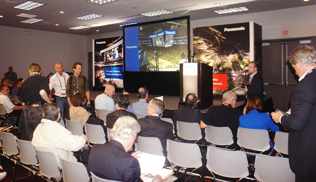 パナソニックは、例年通りコンベンションセンター内の会議室でプレスカンファレンスが開催され、スポーツイベントやテーマパークなどで大きな成果を上げたことを発表し、放送や業務用機器などにとらわれない方向性で展開していくようだ。この中には制作用の機材だけでなく、同社が得意とするところのセキュリティシステムなども含まれている。