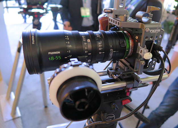 今回の取材カメラにも使って居るCanon CN-E18-80mmの後継機種、CN-E70-200mmの展示があった。こちらも低価格シネズームとして今後のスタンダートな物になるだろう。質感や操作感は18-80mmと全く同じと思って良い。シネマと言うよりやはりマルチスタイルレンズと呼ぶのが正しいかもしれない。