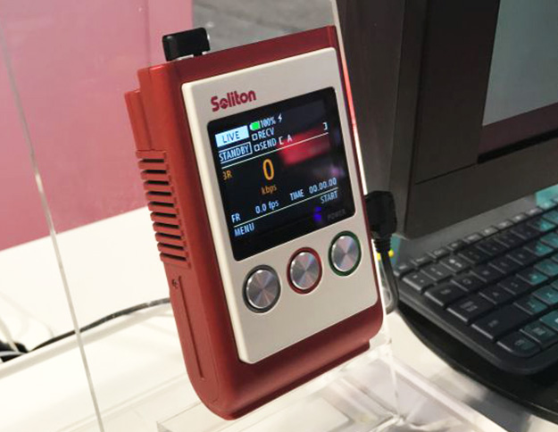 小型と言うことでは、ソリトンシステムズの小型H.265エンコーダZao-Sの実機を見る事ができた。カメラ映像を複数の4G回線に乗せてストリーミングするための装置だが、H.265採用としては最もコンパクトだ。