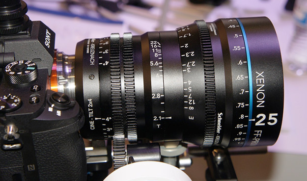 Schneider Xenon FF-Prime Cine-Tiltレンズ25mm T2.1。XenonのシリーズはすべてT2.1に統一されており、25、35、50、75、100mmがラインナップされている