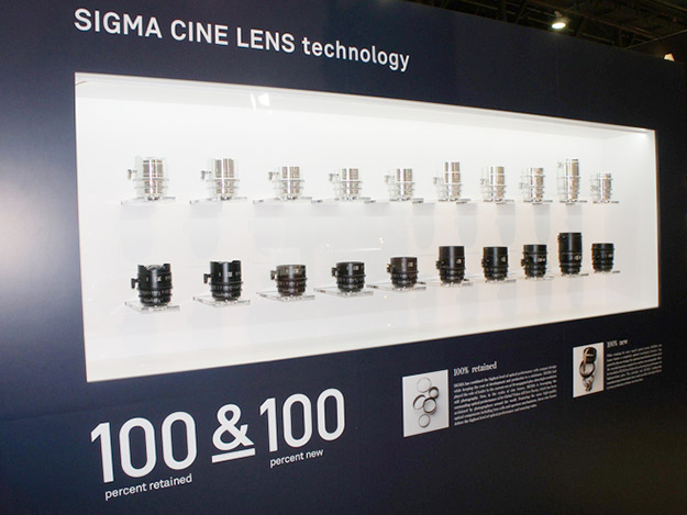 シグマのデジタルシネマ用レンズSIGMA CINE LENSシリーズ。単焦点レンズは、20mm T1.5 FF、24mm T1.5 FF、35mm T1.5 FF、50mm T1.5 FF、85mm T1.5 FFの5本でいずれも35mmフルサイズ対応
