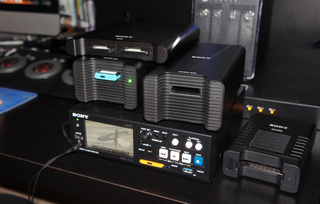 スーパースローモーションカメラシステムHDC-4800のコントローラーデスク。ベースバンドプロセッサユニットBPU-4800に搭載された大容量ストレージ機能により、4K映像を8倍速で、最大4時間の連続記録できる。スローモーション映像制作時、外部ストレージにデータ転送せずに本体内で編集できるため、制作フロー効率化や運用オペレーターの工数簡素化を実現。