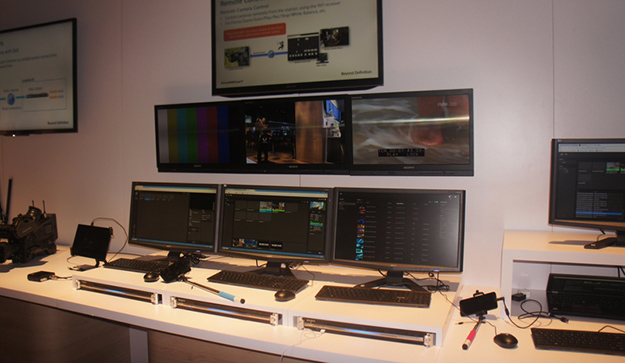 ソニーは、今年もBeyond Definitionをテーマに4K映像やハイダイナミックレンジ(HDR)、IPライブ伝送などに対応した新製品やソリューションを出展した。同社はすでにメイン製品であるカメラやスイッチャーなどの機器を発表しており、今年はこうしたメイン製品の間を埋める製品や、すでに運用が開始されている4K映像制作に必要なシステムや運用に必要なソリューションを中心に展示を行なっていた。