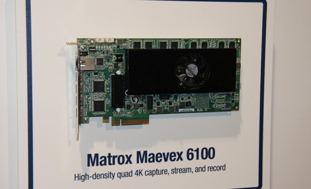 Matroxは、4Kクワッドとエンコードとデコードに対応したMaevex 6150や、文教・医療用途向けH.264エンコーダーMatrox Monarch LCS、4K対応のIPインターフェースカードMatrox X.mio3 IP、4K対応クワッドエンコーダーPCI Expressカード6100などを出展した。