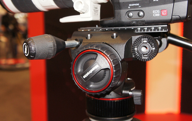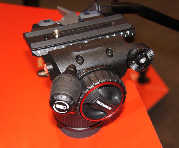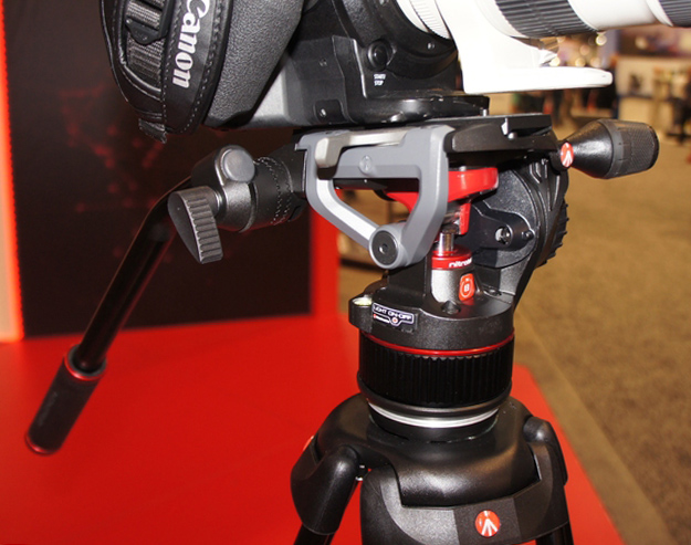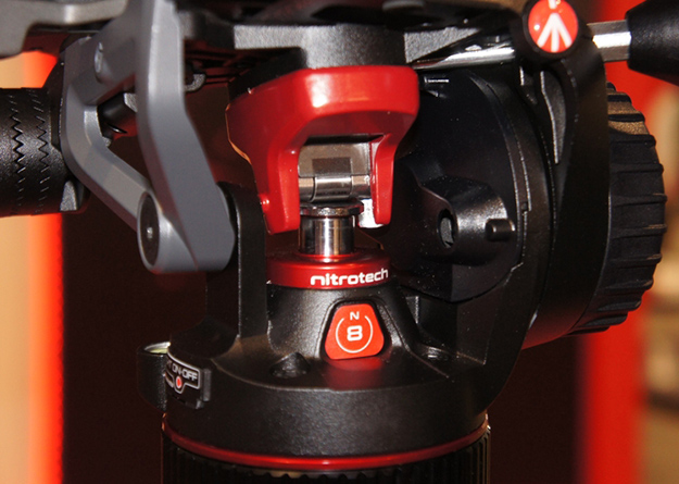 Manfrottoは7年ほど前にも「BRIDGING」という現在の主力になっているユニークなデザインのヘッドを発表したが、今回のNABでは新たな機構を取り入れたヘッド「Manfrotto Nitrotech N8」を発表した。従来のヘッドはスプリングをカウンターバランス機構に採用していたが、「Nitrotech N8」では窒素充填のシリンダーを採用することによりさらにスムーズでバランス調節も無段階で行うことが可能。8kgまでのカウンターバランスに対応している。