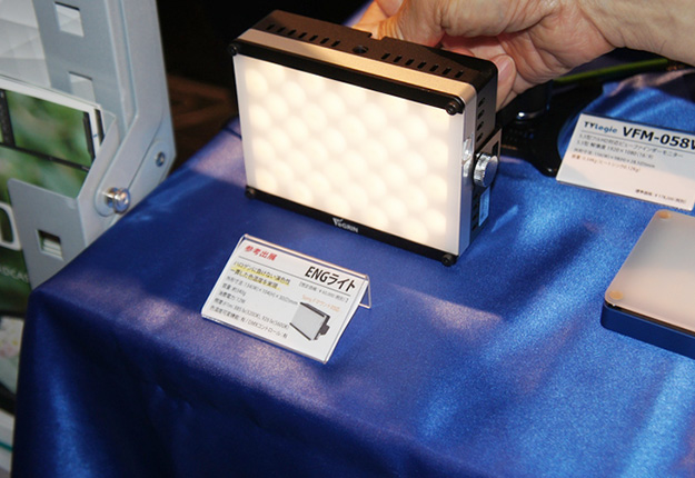 ENGライトFL-200E。色温度を3200-5600Kに可変できるほか、0~100%の調光も可能なほか、DMXによるコントロールにも対応している。電源は7.4-24Vとワイドレンジとなっており、Lタイプのバッテリーや12V外部給電など様々な電源に対応可能。明るさは1mで1050Lux(5600K)