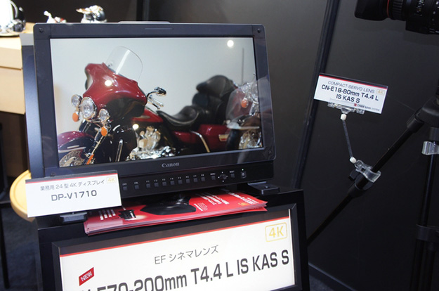 キヤノンは2017年5月31日に発表された新フォーマットを搭載したEOS C200や、昨年発表になっていたものの発売が延期されていたEOS C700 GS PLのほか、EFシネマレンズのCOMPACT-SERVOレンズシリーズとしてCN-E18-80mm T4.4とCN-E70-200mm T4.4、4K対応リファレンスモニターDP-V2420やラックマウントタイプのDP-V1710などの新製品を出展した。