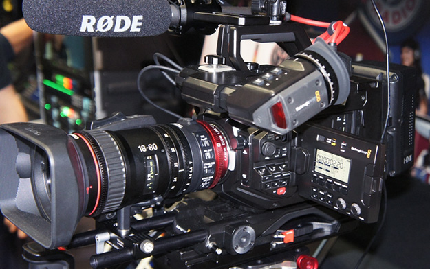 Blackmagic URSA Mini Pro。EF、PL、B4、NikonFなどマウント交換が可能で、Bluetoothによりアイリスや色温度、感度などのリモートが可能