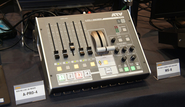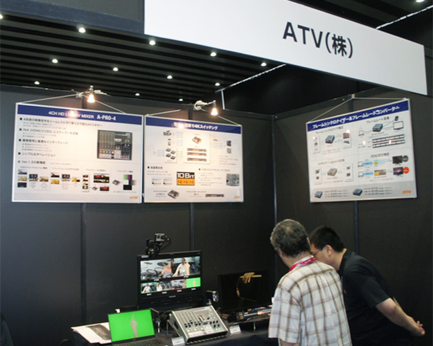 ATVは4チャンネルHDライブミキサーA-PRO-4やテレビ会議やプレゼンテーションに最適な8チャンネルマルチフォーマットビデオスイッチャーMS-8、フレームシンクロナイザー、フレームレートコンバーターなどがラインナップされたビデオコンバースシリーズを出展した。