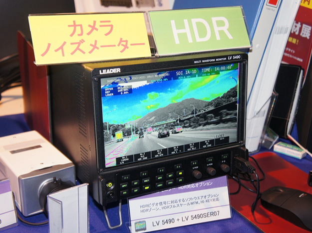 リーダー電子は4K対応の波形モニターやベクトルスコープなどの計測機器をすでにいくつか発売しているが、ITU-R BT.2100やARIB STD-B67、SMPTE ST2084などのHDRに対応した規格やS-LogやC-Logなどソニーやキヤノン、ARRIといった各社のカメラメーカーに対応した計測が行える測定器やすでにある測定器のオプションなどを出展した。4K映像フォーマット・マルチ波形モニターLV5490は背面に拡張スロットが装備されており、各種インターフェースに対応するようになっており、今回は12G-SDI対応のオプションが披露されていたほかIP入力への対応もアピールしていた。