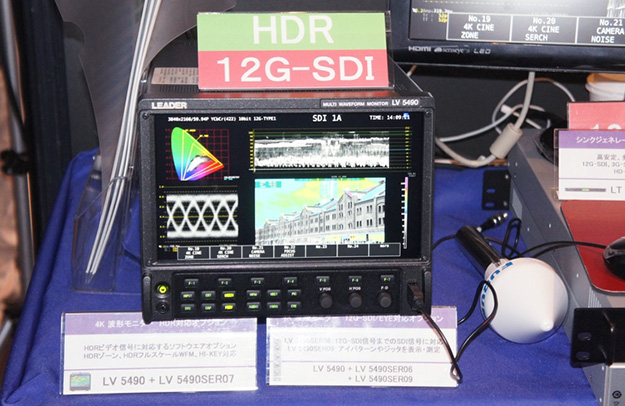 LV5490のオプションスロットにLV5490SER06を装着することで12G-SDI入力に対応。ブースではHDR対応オプションLV5490SER07や、シリアルデジタル信号のアイパターンやジッタを表示/測定が可能なLV5490SER09オプションとともに4K信号の各種測定対応をアピールしていた