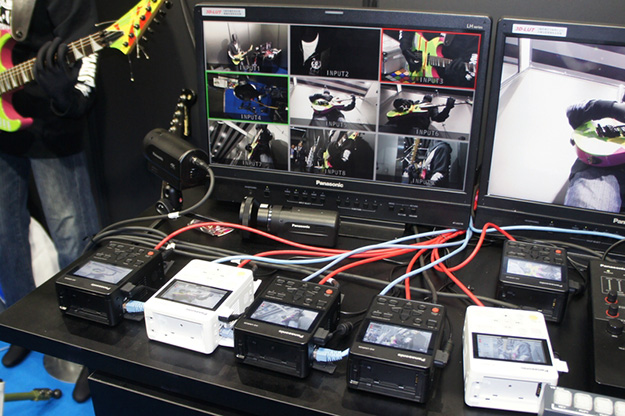 パナソニックはブース名もPOVCAMとし、POVCAMを中心とした出展を行った。ブースは、POVCAMのカメラ9台を使用したイベント収録をシミュレーションした構成となっており、ギターを持ったマネキンを中心にあらゆる角度からPOVCAMのカメラを使って撮影していた。POVCAMにはボディがホワイトの医療用と一般業務用のブラックタイプが用意されているが、今回はそれらを混合した撮影となっていた。また、各カメラをコントロールするためにリモートカメラコントローラーAW-RP120やAW-RP50なども出展しており、IP接続により複数カメラのコントロールの実演を行った。ちなみにパナソニックはAfter NABで製品をブース名として出展することが多いようで昨年はVARICAMがブース名となっていた。